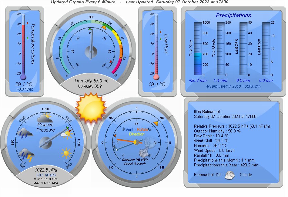 Temperature 29.3°C Relative Humidity 57.0 % Relative Pressure 1022 hPa Wind 6 km/h Precipitation 0.2 mm